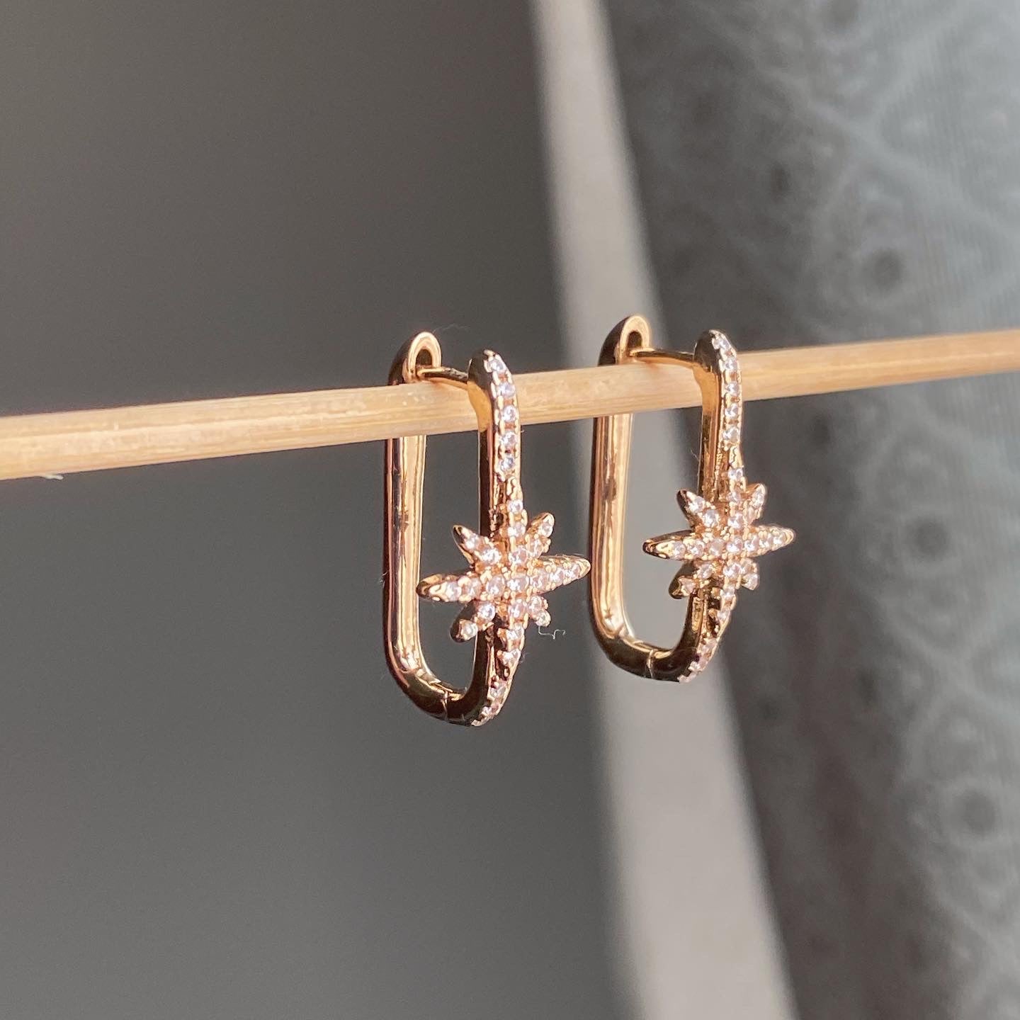 Gold plated, rectangular earrings with studded details and a starry hue.