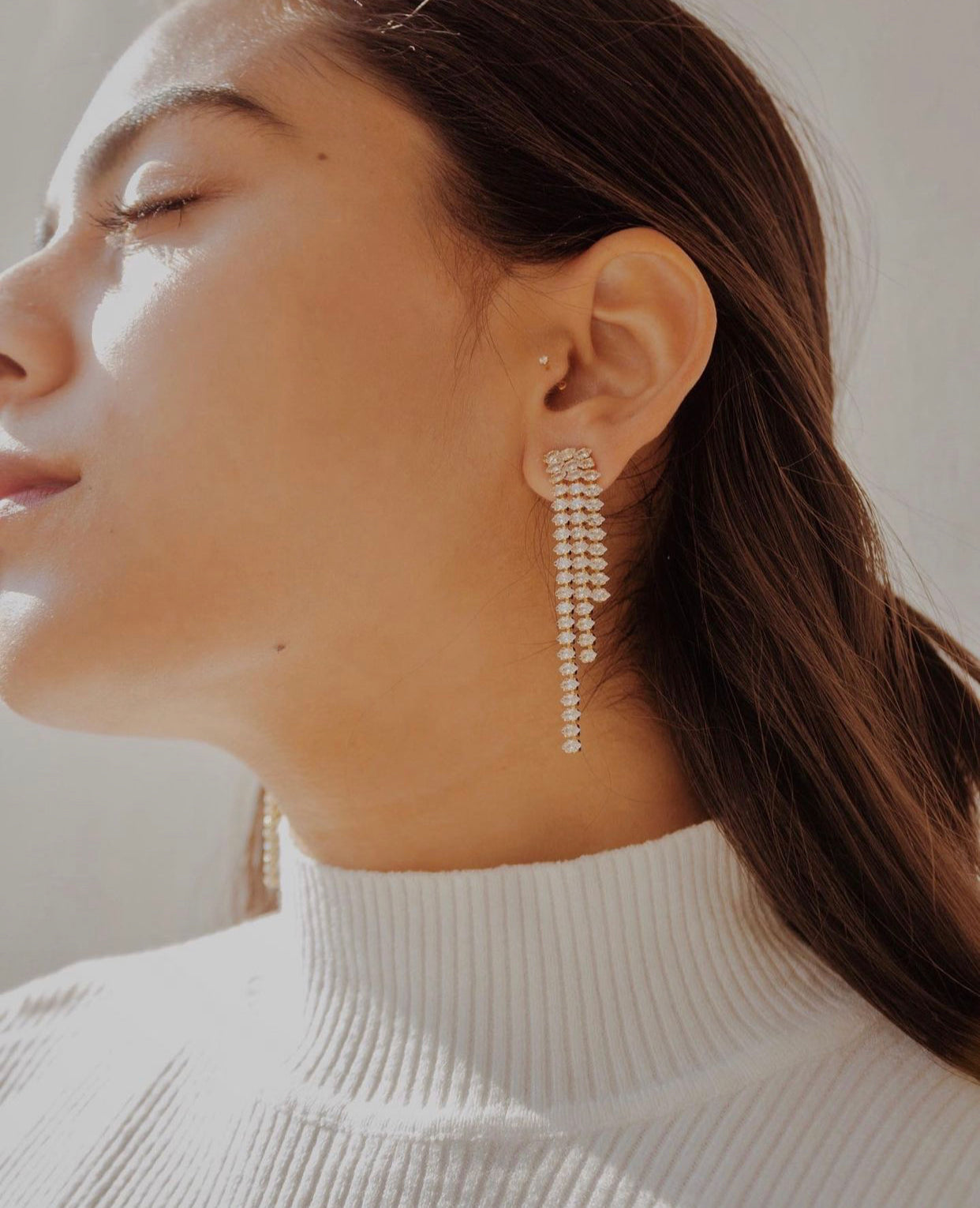 925 sterling silver earrings of studded layered curtain like statement ready to shine on all your fits.