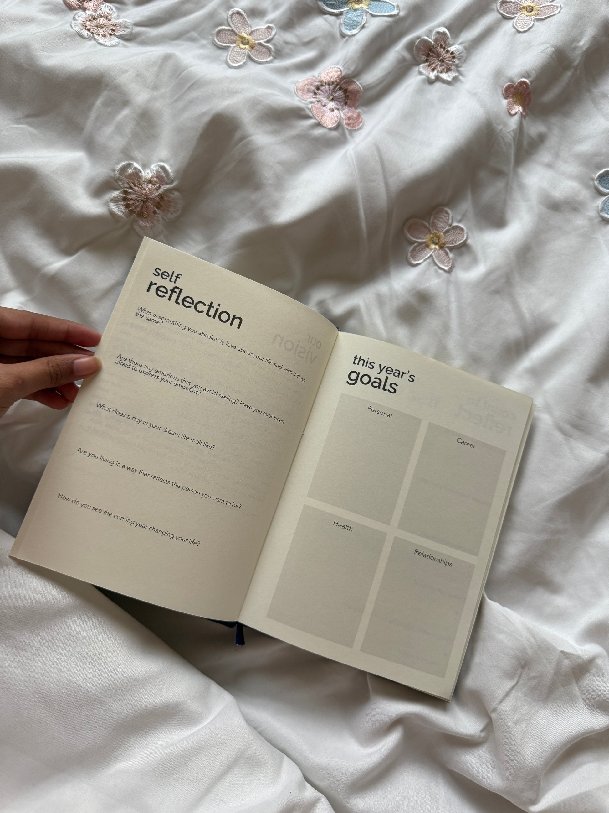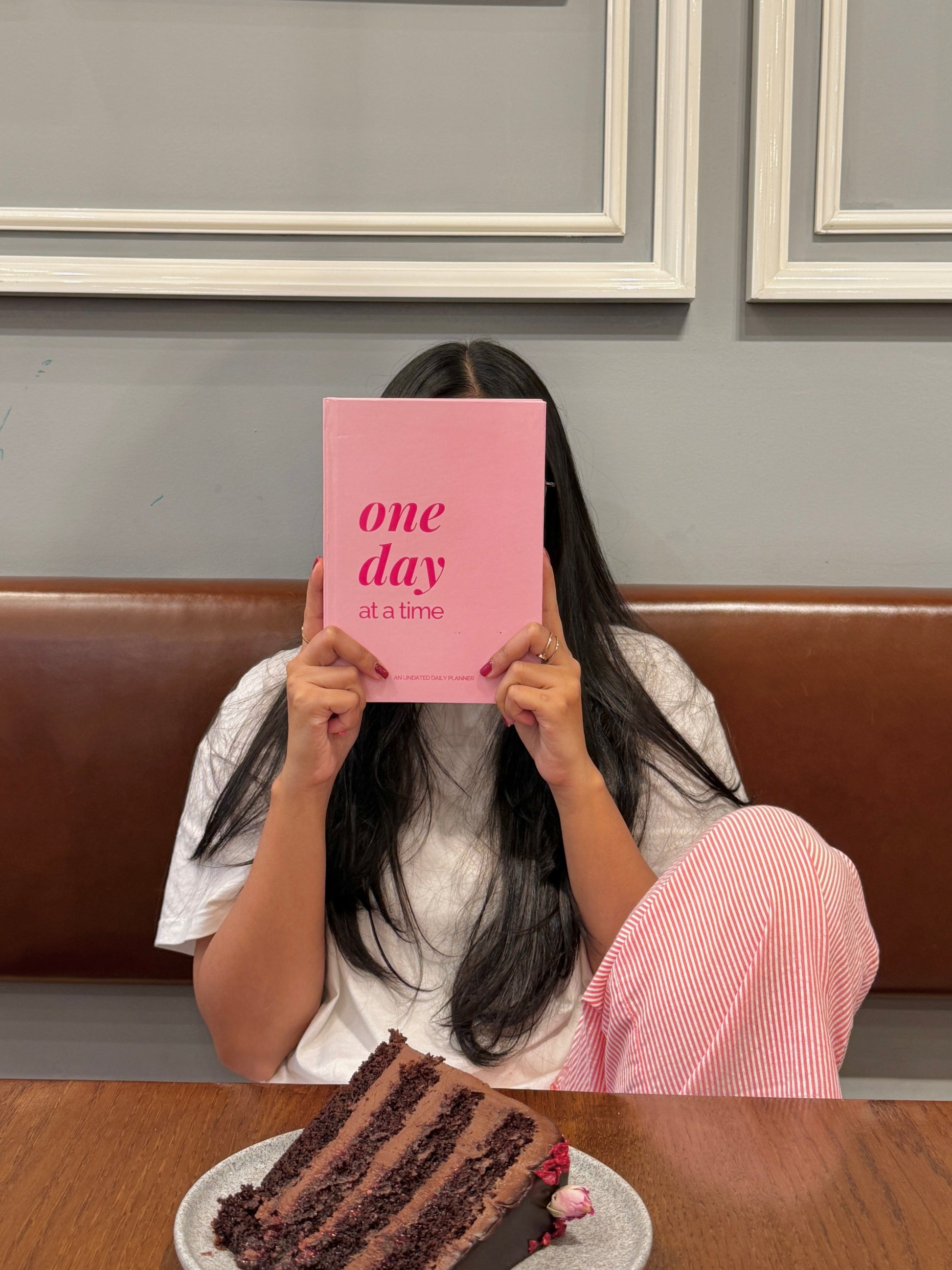 An undated daily planner with 12 themes for every 30 days, each reflecting on a certain aspect of life such as gratitude, self care, positivity to make sure you fall in love with life and value even the smallest moments.