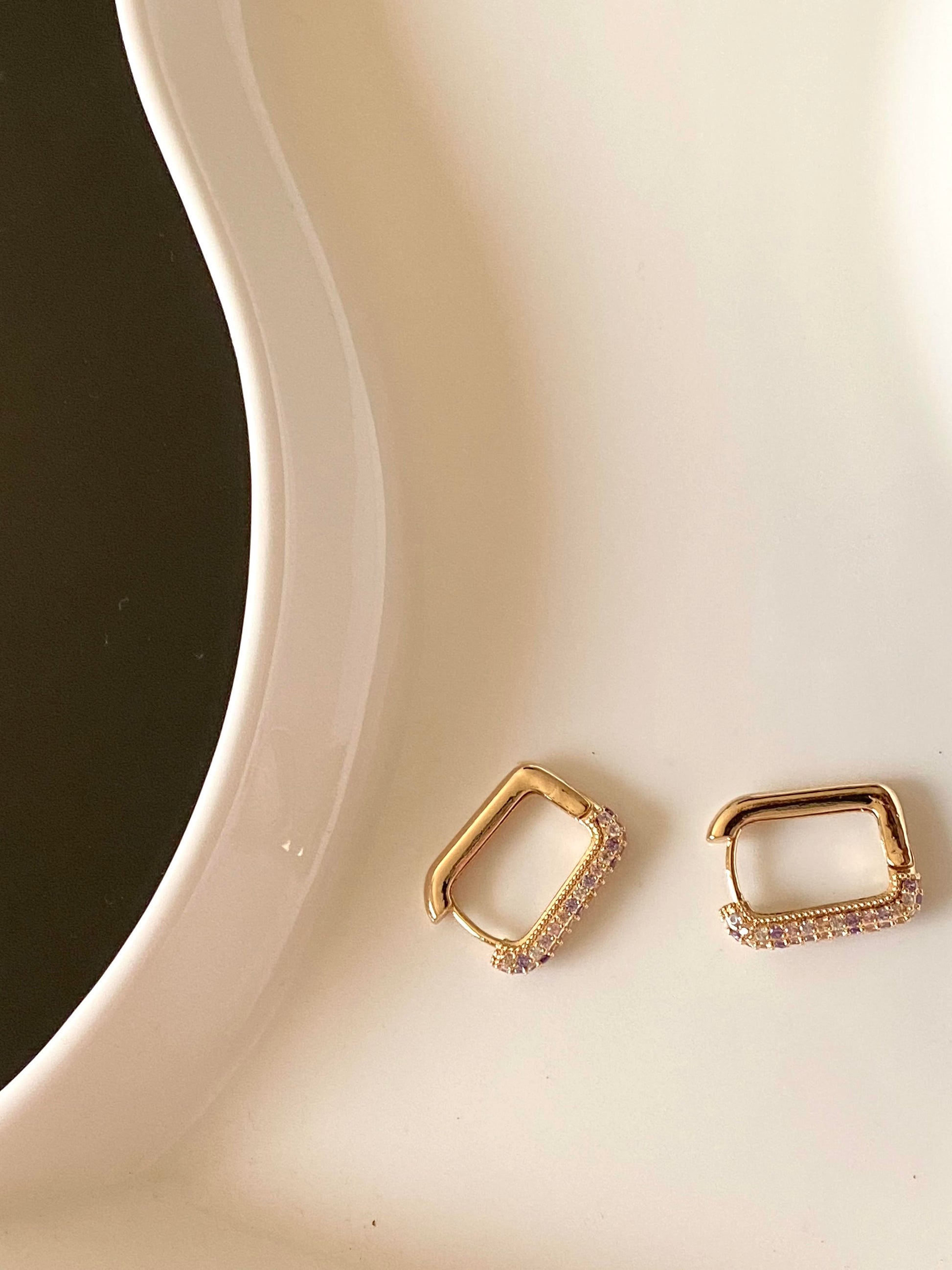 Gold plated, rectangular golden piece with the classiest details studded, that goes with literally anything you can draw from your wardrobe, high quality earrings that will last you a lifetime.