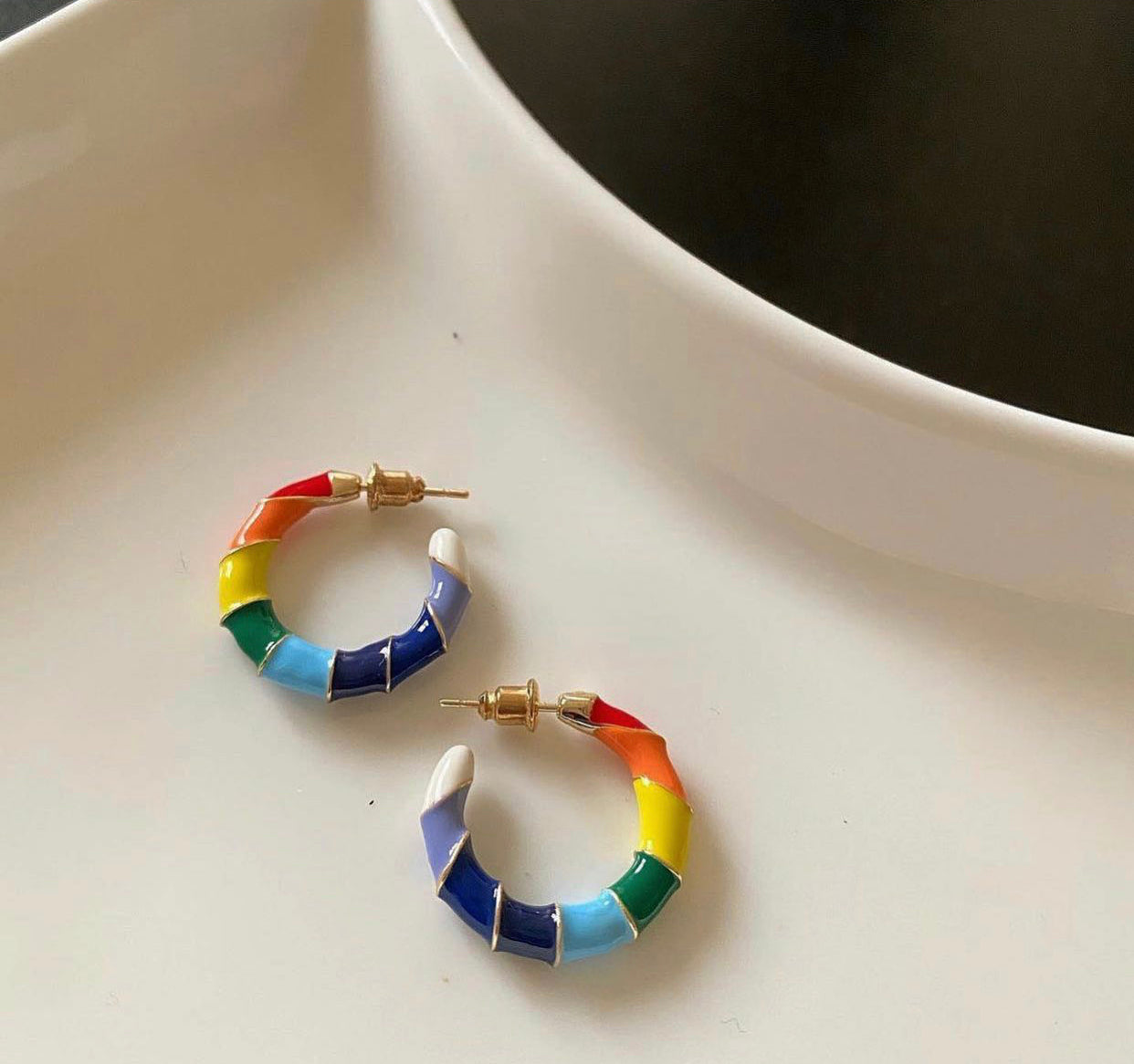 Metallic small hoops with the cutest rainbow pop curve bringing life to your outfits..