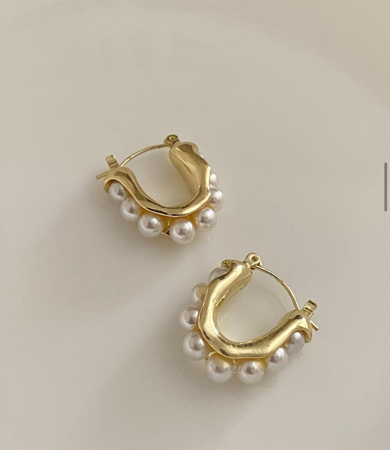 The tucked hoops are a popular demand so here is another version but just a notch better. These pearl and golden statement piece with its intricate details and high quality is what you need to be looking for because we all have so many outfits that these earrings could go with.